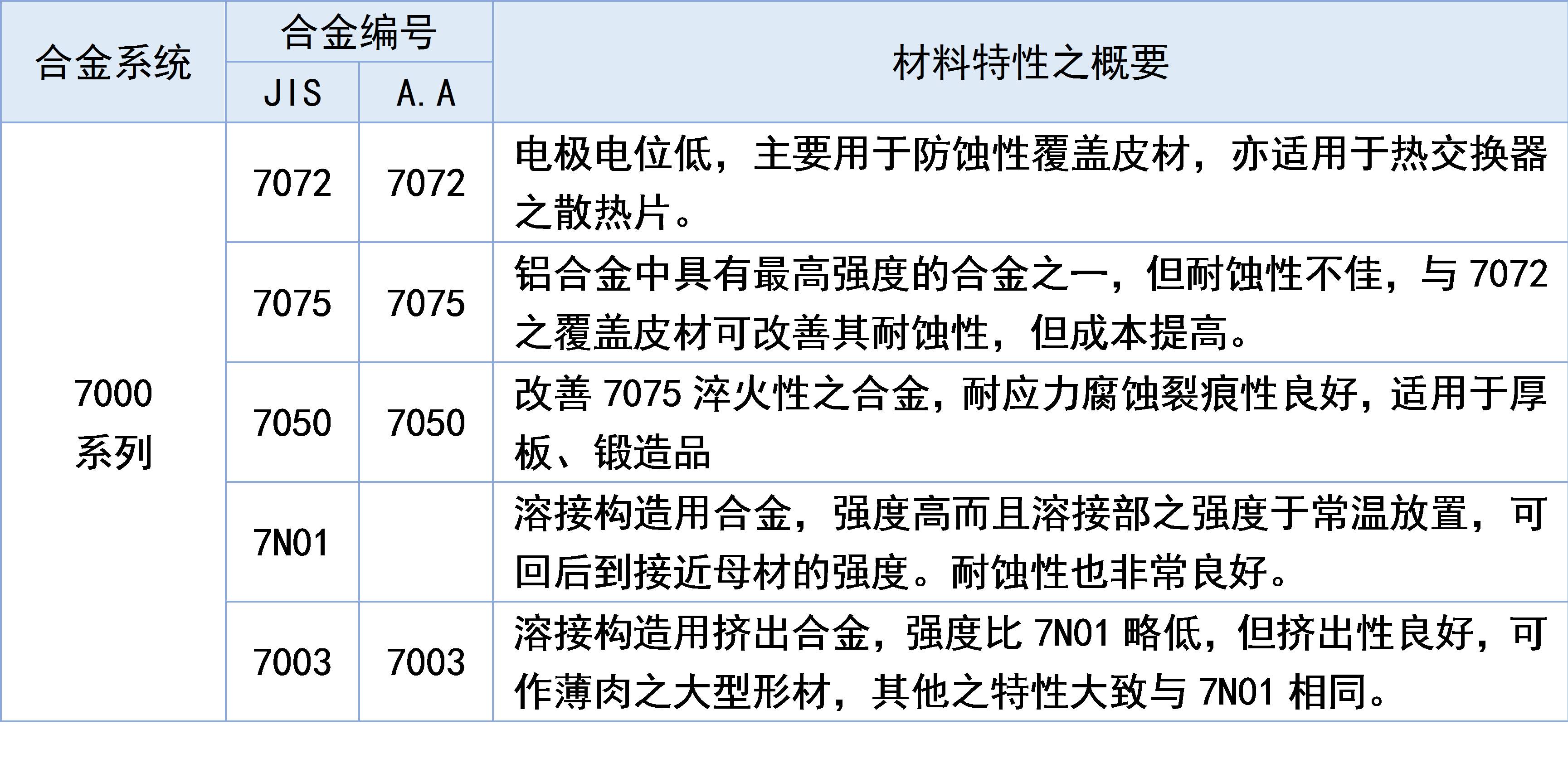 主要含有鋅元素,7000系列鋁合金代表7075 。也屬于航空系列,是鋁鎂鋅銅合金,是可熱處理合金,屬于超硬鋁合金,有良好的耐磨性。 目前基本依靠進口,我國的生產(chǎn)工藝還有待提高
