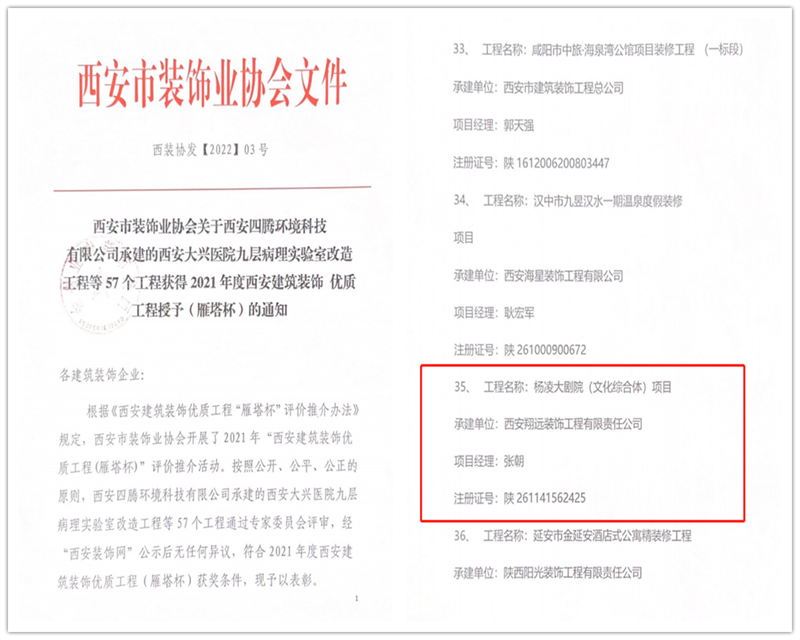 喜報-西安翔遠榮獲“雁塔杯”等多項榮譽