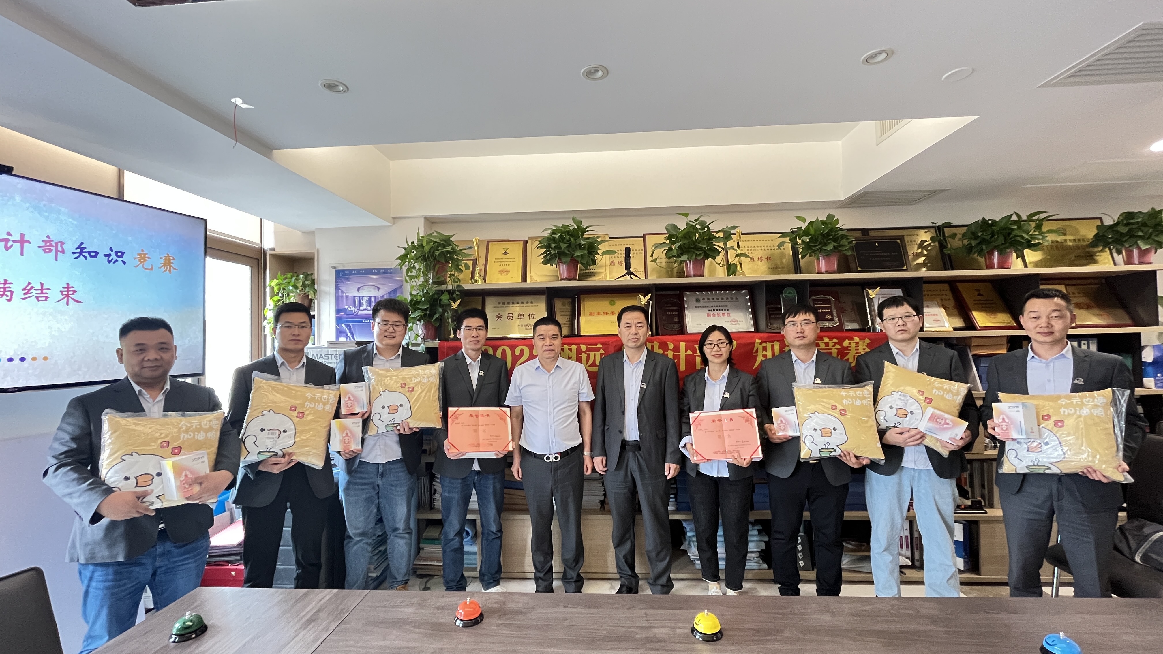 在一陣激烈的角逐過后,兩場比賽的第一名都脫穎而出,內(nèi)裝設計劉青利和外裝設計部師小明分別獲得第一名,由董總為第一名頒發(fā)獎品和證書;梁總和鄭總分別為內(nèi)外裝設計部其余參賽人員頒發(fā)參與獎;至此,我們的比賽在精彩競答和歡聲笑語中圓滿落幕。