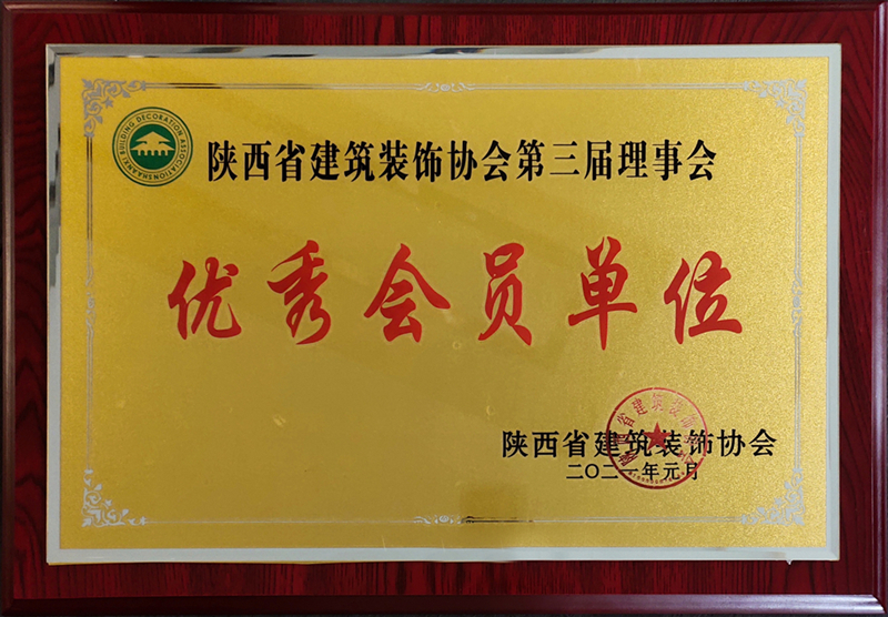 我司榮獲陜西省建筑裝飾協(xié)會第三屆理事會“優(yōu)秀會員單位”。