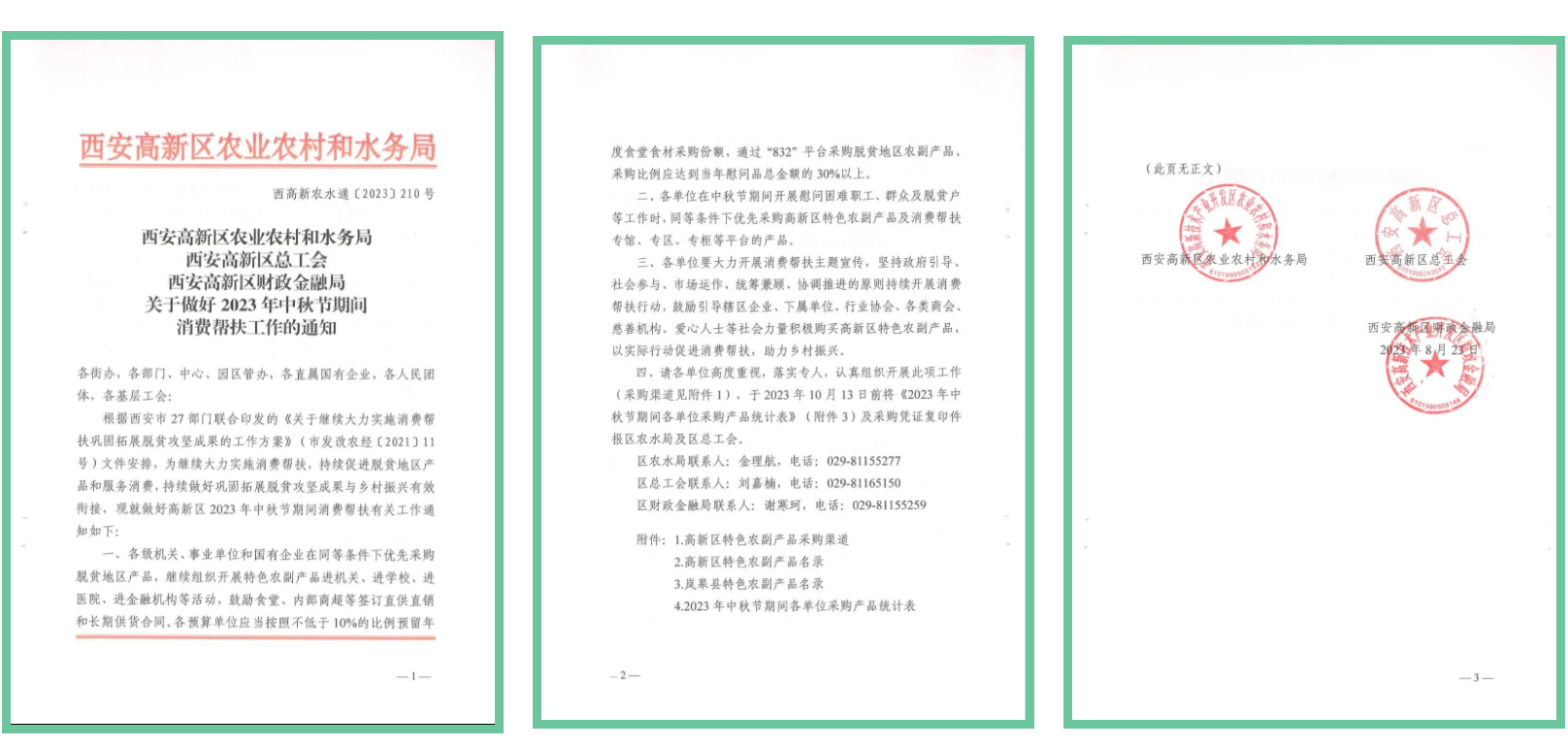2023年8月23日,西安高新區(qū)農(nóng)業(yè)農(nóng)村和水務(wù)局、西安高新區(qū)總工會、西安高新區(qū)財政金融局發(fā)布關(guān)于做好2023年中秋節(jié)期間消費幫扶工作的通知。鼓勵各單位、各企業(yè)在同等條件下優(yōu)先采購脫貧地區(qū)產(chǎn)品,組織開展特色農(nóng)副產(chǎn)品進機關(guān)、進醫(yī)院、進各大機構(gòu)等活動。要求各單位大力開展。消費幫扶主題宣傳。